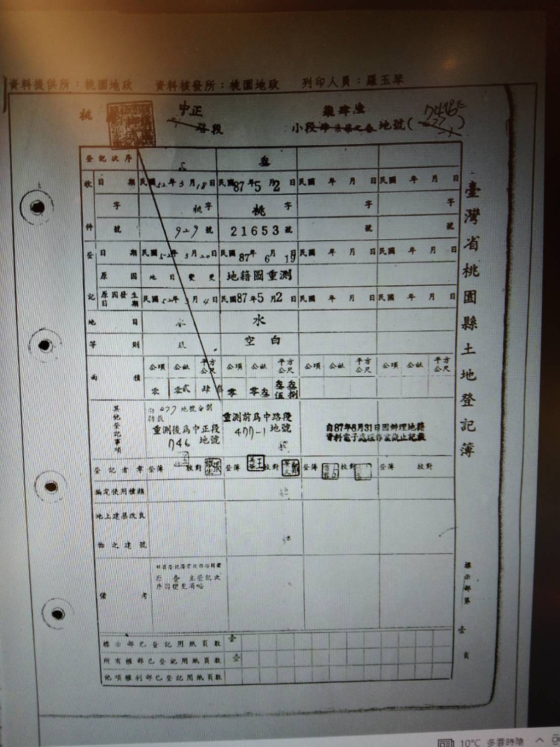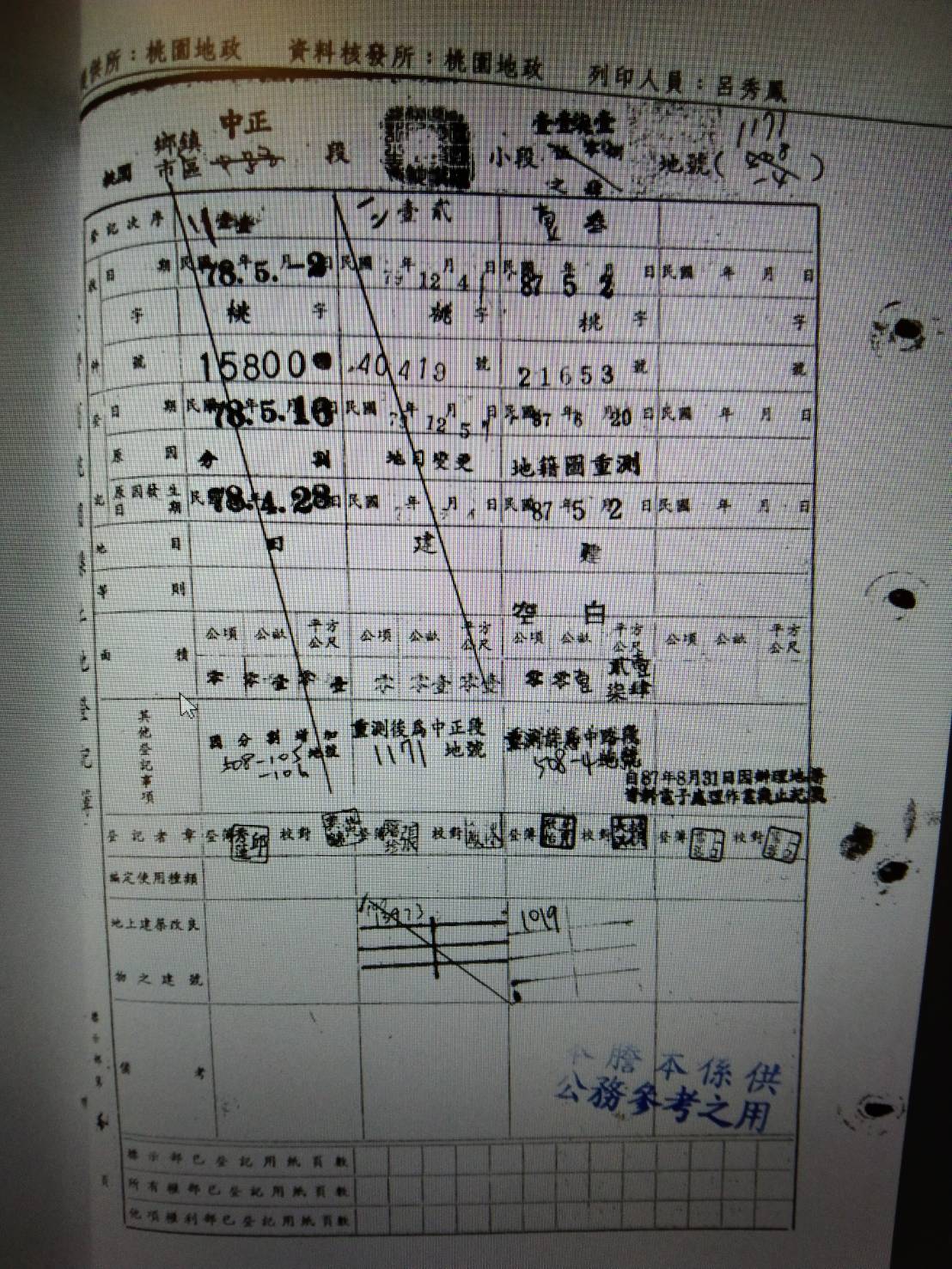 111.12.19我幫李郅民、蔡麗華夫婦完成桃園檢察署「111年度請上字第485號」陳報狀,並陪他們一起去送件。李郅民帶來以前我拍攝中正段1170-1地號2301C樁位點的照片,想影印交給檢察官,被蔡麗華罵:「111.10.20桃園地院民事執行處測量已導正回桃園區壽星街45號77.11.2被桃園地政事務所殺一刀的位置,我們桃園區壽星街41號佔用中正段1170-1地號土地就變10.75平方公尺。中正段1170-1/2301C樁位點已沒有意義了。」因我家門口自101年起被卓素貞霸佔、轉租曾麗珠賣菜,逼迫我追追追 ... 沒辦法一定要找到許茂來買回中正段1170-1地號土地,我先找到大園區內海國小、再找到貴文宮,再打聽到許茂來家從大園鄉內海墘、變更為濱海路三段,政府要讓我一輩子永無翻身之日的國家機器迫害。連總統論文、學位都被偷天換日,何況我只是一個低調的藝術文學家,生命財產被違憲、凍結、竊盜,都訴訟到最高法院再審第四次,還有誰能為我平反?