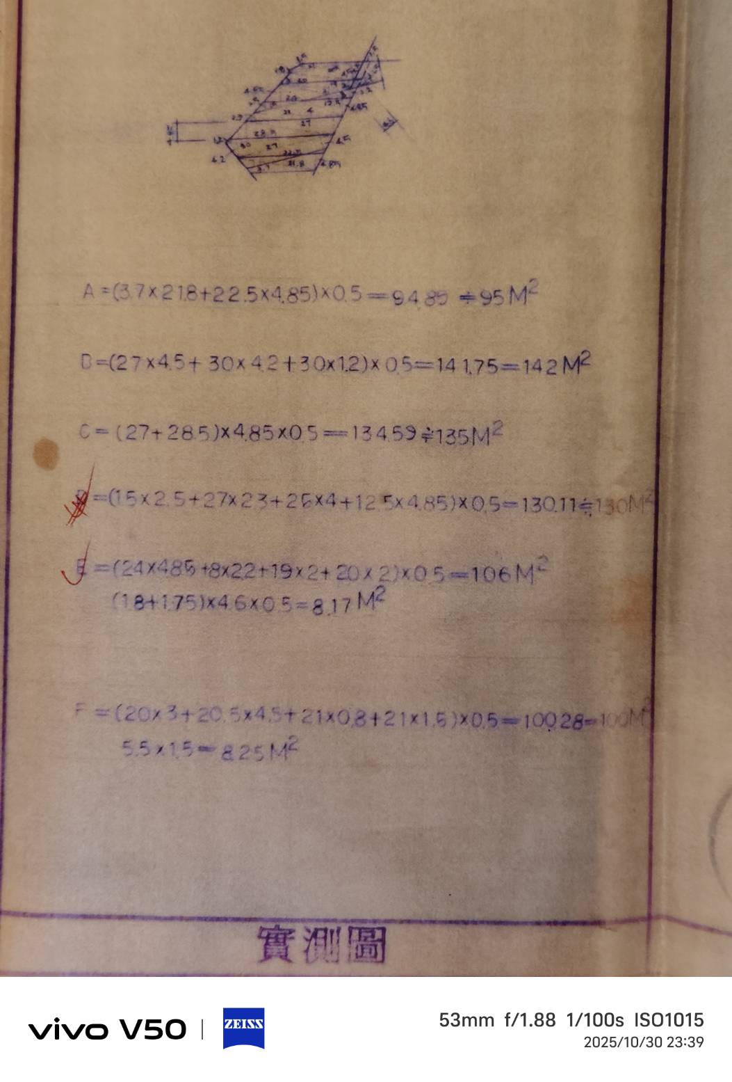 由78、79年桃園區壽星街41號蔡麗華之建照變更申請書附件之地籍圖、實測圖比對 ..... 桃園區壽星街43號明顯實測面積灌水變胖(肉眼可見)。可比對這張69.05.22由桃園地政事務所趙世精核發的桃園市中路段508-4地號歷史地籍圖謄本,桃園區壽星街33-43號建照變更申請書附件之地籍圖、實測圖就會原形畢露。